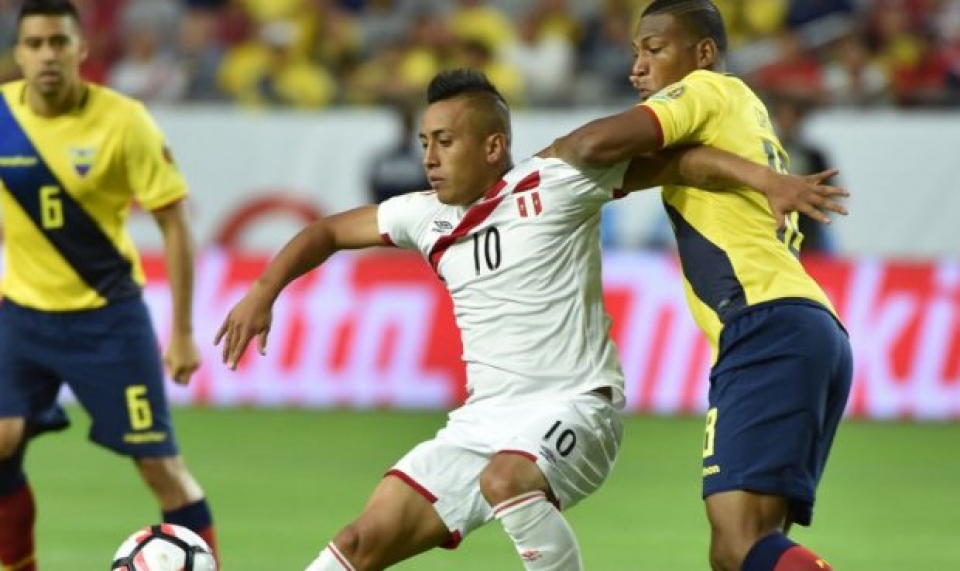 Perú venció 2-1 a Ecuador en partido de alta intensidad por la octava fecha de la Clasificatoria Sudamericana al Mundial de Rusia-2018 jugado en el estadio Nacional de Lima. Los goles del equipo peruano fueron anotados por el mediocampista Christian Cueva a los 18 minutos y de remate de derecha por Renato Tapia a los 77. Por Ecuador descontó de cabeza Gabriel Achilier a los 30. |