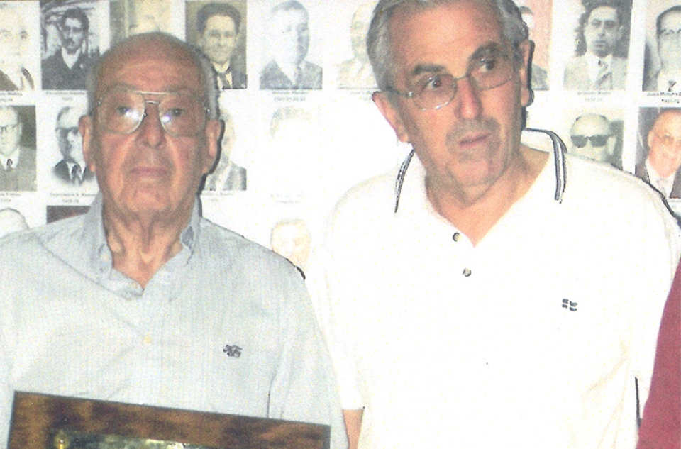El popular y lamentablemente ya fallecido Luis “Vasco” Soto junto al Ing. Luis Alvarez, personalidades del club Sandú, de quienes la tribuna y el gimnasio llevarán sus nombres. El próximo sábado en el partido ante Praga por el Competencia se estarán inaugurando las nuevas obras en el gimnasio de calle Artigas. |