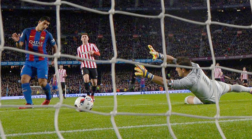 Suárez recibió un centro perfecto de Neymar al segundo palo,