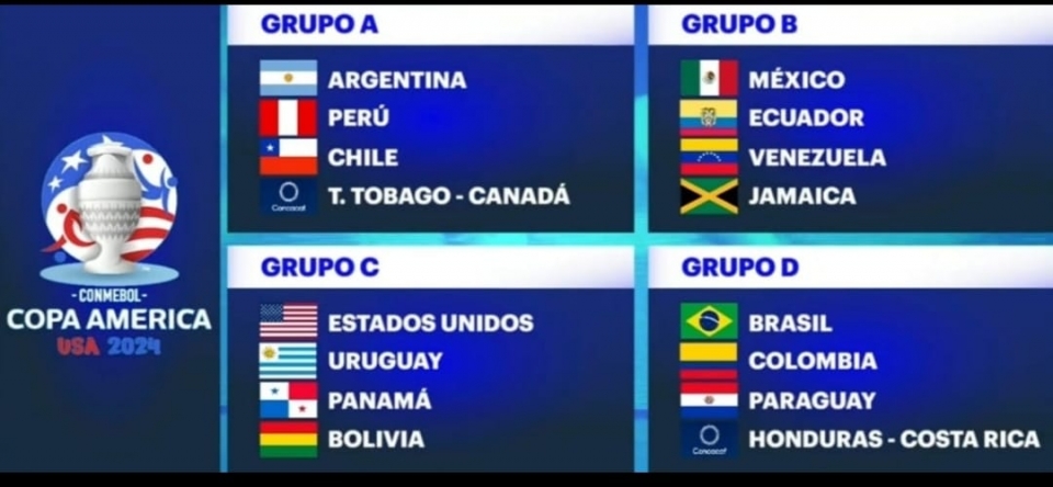 Se realizó anoche en el Hard Rock Stadium de Miami el sorteo de la Copa América 2024, que tiene 14 equipos confirmados y 2 que se conocerán próximamente. Uruguay salió sorteado para el Grupo C junto al cabeza de serie Estados Unidos, Panamá y Bolivia, que como se ve, puede ser bastante accesible para la celeste. El Grupo A lo conforman Argentina, Perú, Chile y Canadá o Trinidad y Tobago. El B por: México, Ecuador, Venezuela y Costa Rica u Honduras y el D por Brasil, Colombia, Paraguay y Jamaica. Este certamen se disputará entre el 20 de junio y el 14 de julio del año próximo. |