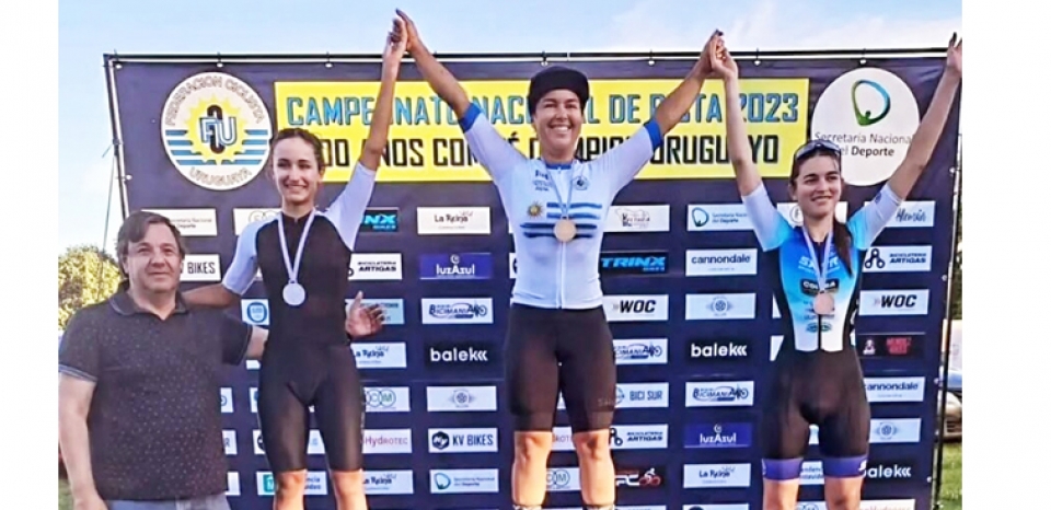 La pedalista Mariana García Britos también se lució en el Campeonato Nacional de Pista disputado el fin de semana en Montevideo. La mercedaria, que defiende al Club Ciclista de Rafaela (Argentina), consiguió dos medallas de oro: una en la prueba de kilómetro contrarreloj y la otra en la prueba de Persecusión Individual, donde se quedó además con el récord nacional pista abierta. También se alzó con medalla de plata en Keirin y medallas de bronce en Scratch, prueba por puntos y Eliminación. |