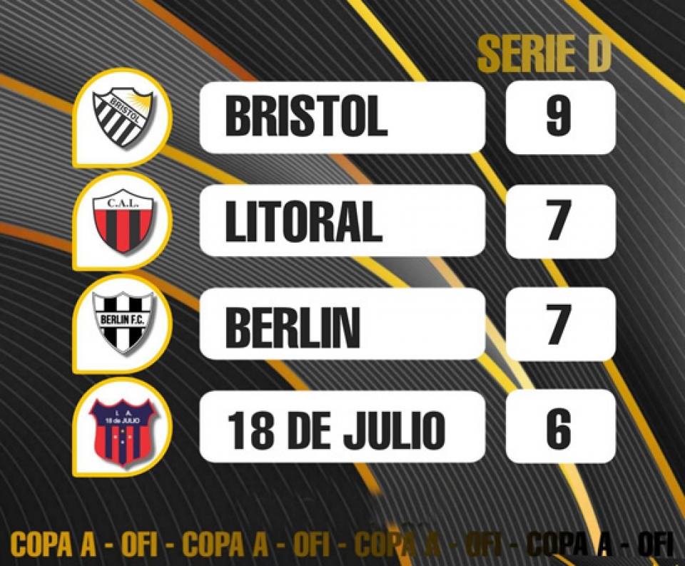 Por un lado Bristol, líder de la serie, visita a Berlín F.C. en el Parque Romay desde la hora 15.30 con el arbitraje de Robert Ledesma, Sebastián Samit y Robert Aguirre de Salto. El bohemio mercedario con solo empatar estará pasando de fase, mientras que el elenco berlinense debe ganar sí o sí.