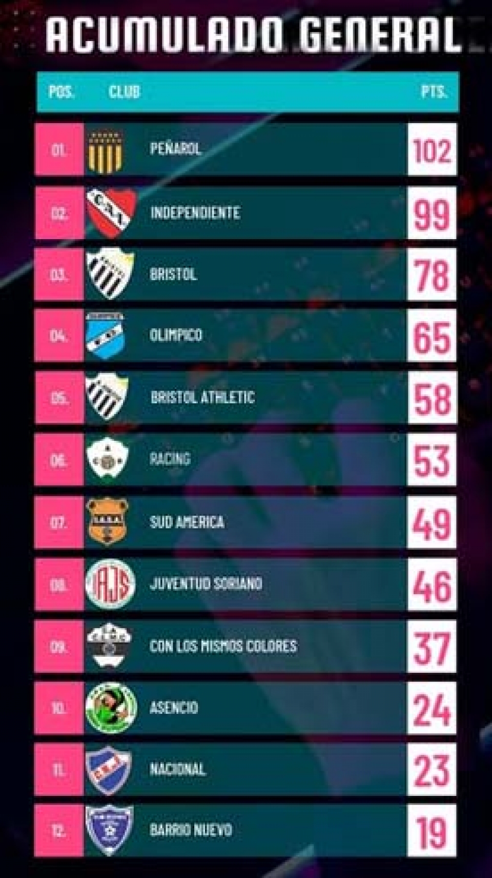 11.15 hrs – Juventud Soriano vs Barrio Nuevo.