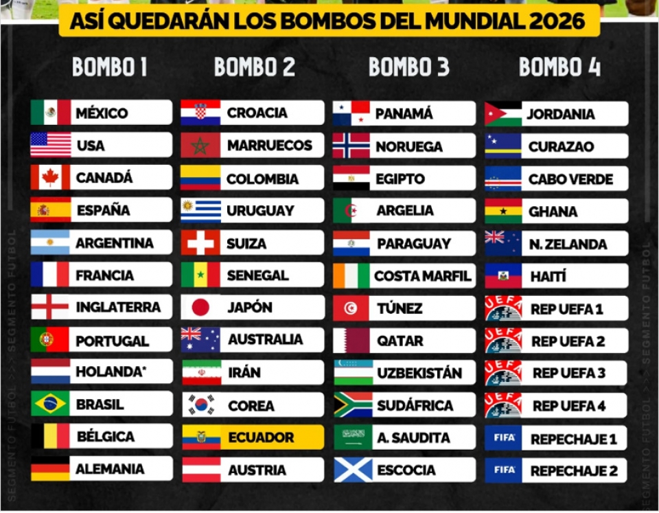 Confirmados los Cuatro Bombos del Mundial 2026