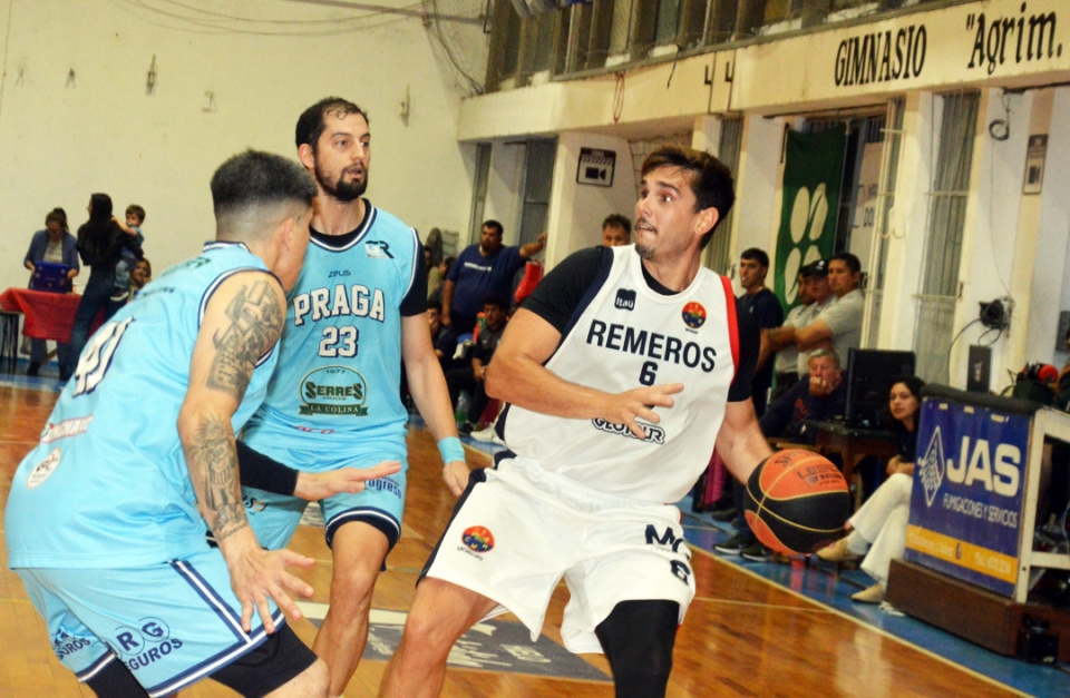 Gran triunfo de Praga anoche en el gimnasio "Mario Eduardo Bellini" de Remeros en la continuidad del torneo de 1ª que organiza la Liga Regional de Básquetbol de Soriano.