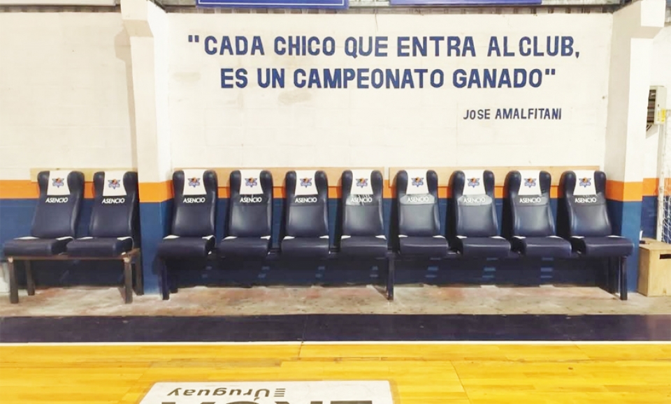 Pacaembú Biguá, campeón de la Liga Regional de Báquetbol de Soriano, continúa con mejoras en su gimnasio "Javier Novales Mayol" ubicado en calle Detomasi. En este caso fueron colocadas nuevas butacas para el banco de los suplentes, en lo que significa una sensible mejora en la comodidad de los deportistas locales y visitantes en los partidos que se disputan en ese lugar. |