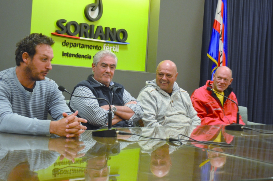 En la foto, de izquierda a derecha, Rodrigo Eugui (Director de Deportes de la IMS), el Intendente Agustín Bascou, el presidente de la Asociación Uruguaya de este deporte Bruno Casa y el coordinador de la motonáutica en Soriano Guillermo Stankievich.