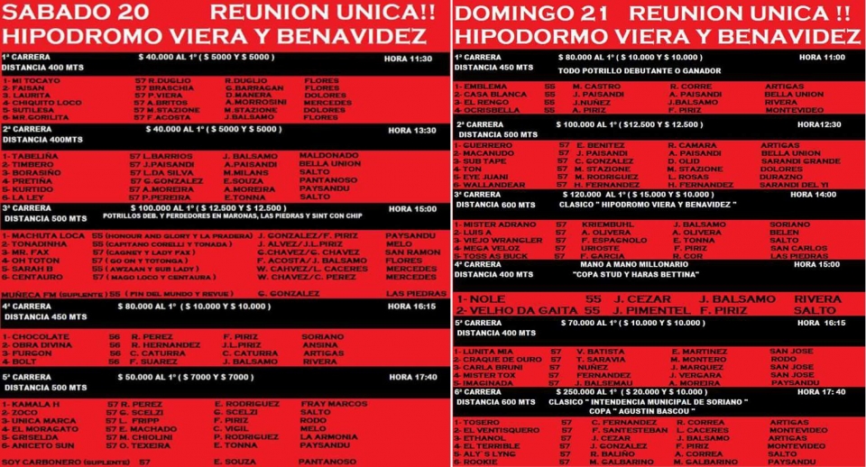 Quedó ayer conformada la programación para las dos reuniones hípicas de sábado y domingo en el marco de la inauguración de las obras de refacción del Hipódromo "Viera y Benavídez".
