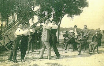 Confirmando lo dicho, reproducimos aquí un documento que reafirma el que, al comienzo, el tango se bailaba entre hombres, estando estas fotos tomadas en un paseo campestre de una institución deportiva de nuestra ciudad, apreciándose las numerosas parejas todas integradas por varones.