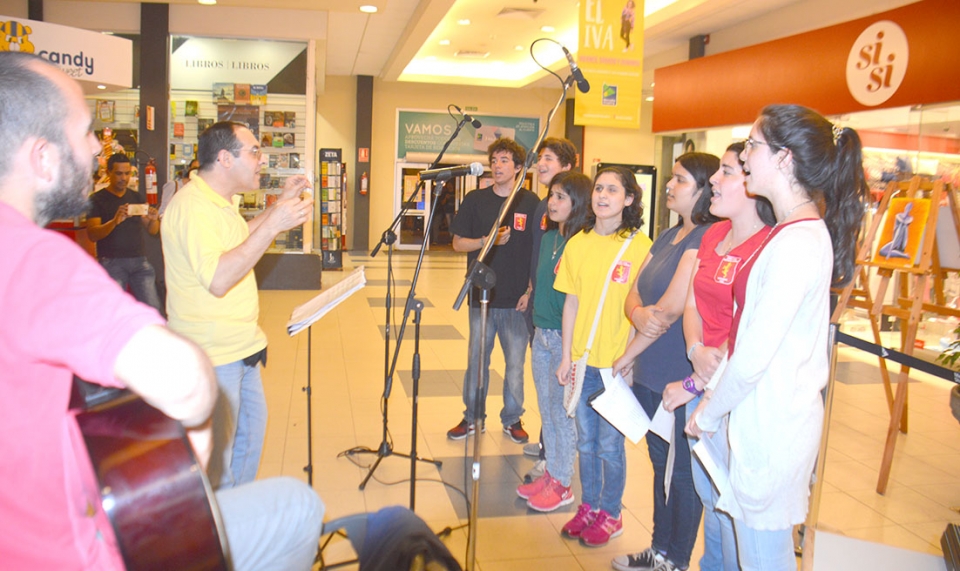 Anoche en Mercedes Shopping se disfrutó de un concierto a cargo del Coro del Liceo Nº 1 dirigido por el profesor Ricardo Mezquida. La oportunidad fue propicia para dejar inaugurada oficialmente la muestra de trabajos realizada por alumnos de los 6tos. años de Arte que se exhibe en el hall central de este complejo comercial. |