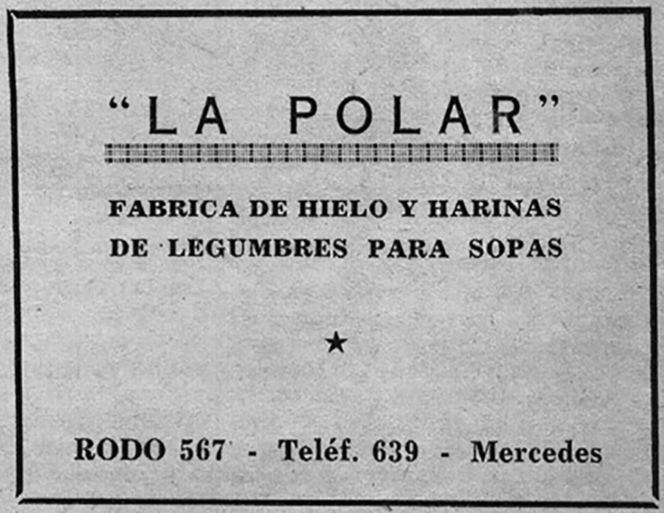 GRAN ADELANTO. Si bien ya se conocía la manera de obtener barras de hielo para la conservación del frío en alimentos y bebidas, las que se habían ofrecido tanto en la Estancia “Santa Blanca” de Caviglia, como en la propia oficina de los Hnos. Preve en instalaciones de la Usina de energía eléctrica, se instaló en un local apropiado para ello en calle Rodó Nº. 567 la Fábrica “La Polar”, que obtenía pesadas barras de hielo y también harinas de legumbres para sopas. Este emprendimiento que significó un gran adelanto, fue instalado por los hermanos Ritorni, siendo posteriormente de Miguel Reccioppe.