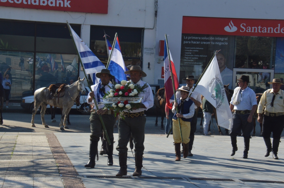 Fue otras muestra testimonial de la defensa de la figura del gaucho. La 8va marcha de caballería se clausuró en la tarde de hoy al pie del monumento al gaucho en Plaza Independencia, Allí se colocaron ofrendas al grito de ¡Viva la Patria! |
