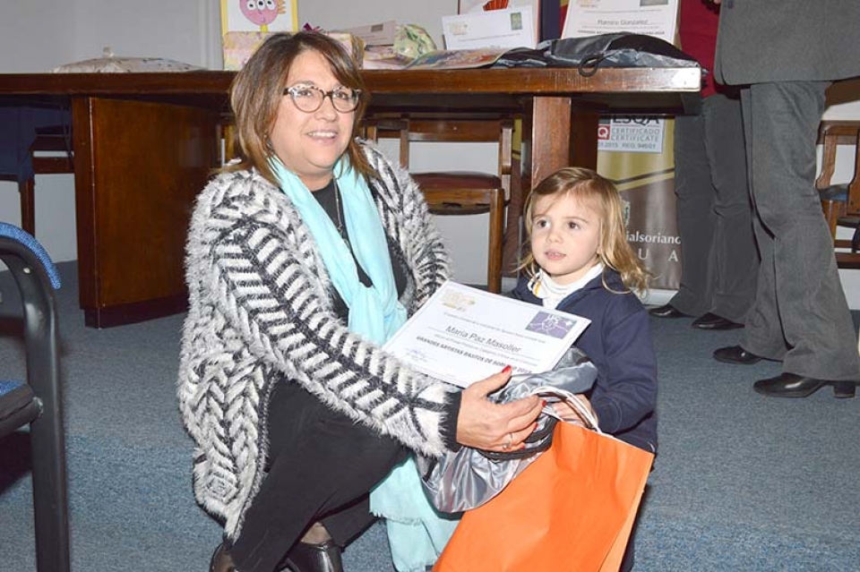 En el salón “Arrutti Diez” hubo rostros sonrientes, manos que abrían rápidamente sus regalos y una muestra con los trabajos premiados.