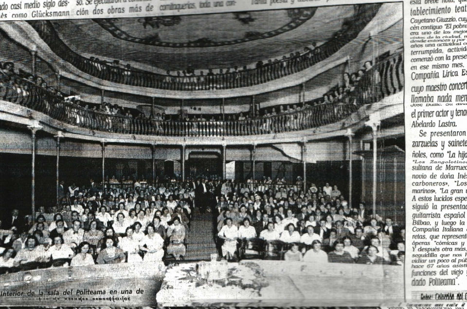 20 de mayo de 1857- se inaugura el Teatro “Progreso”, origen del actual Teatro Municipal. De acuerdo a lo que se consideraba habitual en siglos anteriores y posiblemente introducido por este inmigrante vasco francés, Juan Bautista Soumastre, quien al instalarse en el Uruguay, implantó en un lugar a propósito un corral de comedias, especie de teatro con reminiscencias de las de su sitio de origen. Era habitual en España lo que se conocía como teatro de comedias o corral de comedias, siendo éste un sitio abierto, aprovechando espacios amplios en los que se instalaba un escenario al frente, con galerías o gradas laterales cubiertas, generalmente en dos niveles, donde se instalaba el público, el que también ocupaba los numerosos asientos desplegados frente al estrado. En España se respetaba celosamente un sitio al fondo del corral, en las galerías, denominado “cazuela”, donde se ubicaban las mujeres solteras, apartadas totalmente del sexo opuesto, mientras que en las propias galerías lo hacían las familias mientras los hombres, en general, permanecían de pie en el fondo del corralón. En ciertos lugares existían sitios especiales para autoridades, religiosos, personas que transitaban por un duelo, etc. los que en muchos casos no querían ser vistos; existiendo también en ciertas circunstancias, un sitio al fondo donde se expendían alimentos, bocadillos y bebidas, ya que las representaciones duraban largo tiempo, aprovechando la luz del sol, ante la carencia de iluminación artificial en esa época. También se utilizaba un amplio toldo en ocasiones en que la luz era muy intensa o debía tratar de atemperarse el agobiante calor; este toldo se podía correr o colocar a voluntad, facilitando de ese modo la comodidad del público. De esta manera nos imaginamos el comienzo de la actividad de este Teatro “Progreso”, iniciativa de este vasco francés o propiamente bearnés. Soumastre había venido al Uruguay unos años antes, habiendo casado en 1841, creando una numerosa prole y estando instalado en esa esquina desde 1840 donde permaneció largo tiempo. En los comienzos del poblado, esa cuarta manzana original fue adjudicada al moreno libre Manuel Cutón, quien por documento simple entre ellos y ante testigos lo vendió a José María Molina el 17 de noviembre de 1837. Finalmente el 8 de junio de 1840, el referido Molina lo vendió a Juan Bautista Soumastre por $ 200.- en moneda de plata ante el Esc. Ambrosio Agustini, teniendo el terreno 25 varas por calle San José por 50 varas en esquina con calle Sarandí, donde también instaló su domicilio. En ese terreno, utilizando una especie de cancha o corral entre los muros, diseñó Soumastre ese primer teatro de la población que pocos días después sería declarada ciudad por las autoridades metropolitanas. También se conocía ese lugar como “la cancha de arriba” por el hecho de practicarse allí el juego de pelota, también traído por los vascos que habitualmente lo practicaban, Como se ve se aprovechaba la conformación de las paredes para darle también otro destino a ese sitio. El teatro también fue conocido entonces por el nombre de su dueño, nombrándoselo como “Teatro Soumastre”. ------------------------------------------- 11 de setiembre de 1893- se inaugura el “Politeama Colón”- hoy Teatro Municipal. Luego de muchos años no le fueron bien los negocios a Soumastre, quien cae en quiebra y sus bienes son objeto de remate, adquiriendo ese lugar don Germán Fleurquin y sus siete hijos, pasando a conocerse el teatro, durante un tiempo, como “Teatro Fleurquin”. Es en ese tiempo que la Junta Económico Administrativa reconoce la propiedad de ese terreno a Germán Fleurquin e hijos, quienes a su vez, el 5 de diciembre de 1892 lo venden a don Cayetano Giuzzio por $ 4.000 estableciéndose en ese contrato las medidas en metros, totalizando 21 mts. 475 mms. a calle San José por 42 mts. 95 cms. sobre calle Sarandí. En general lo que se presentaba al público era la actuación de Compañías de Zarzuelas, o de representaciones de teatro, ya fueran comedias, dramas gauchescos o sainetes. También actuaban prestidigitadores, gimnastas, faquires y llegó también a actuar una “Compañía de Perros adiestrados”. Se mostraban curiosidades, como la mujer más alta del mundo, enanos, contorsionistas, personajes deformes, etc. En ese tiempo, quien había adquirido la finca y el teatro, contrataba las mejores compañías que actuaban con éxito en Buenos Aires y que transportadas en barcos por el Río Negro y el Uruguay desde aquella capital, permanecían varios días hospedadas en los hoteles de la ciudad, ofreciendo distintas representaciones, siendo apreciable la concurrencia de numerosas familias que tenían muy pocas diversiones fuera de las que aquí se ofrecían. Ya para entonces la edificación lucía muy distinta y entre altas paredes y un sólido techo se habían adecuado las instalaciones interiores ofreciendo mayores comodidades y seguridades. Ya para entonces el Teatro se denominaba “POLITEAMA COLON”, nombre que perduró y lo individualizara durante mucho tiempo. La edificación diseñada por el Arquitecto Alfredo Massué y construida por la empresa de Pedro Rovira podía albergar a más de 500 espectadores en tres niveles, incluyendo palcos, plateas, tertulias y paraíso. Desfilaron por su escenario grandes artistas, entre ellos el renombrado Carlos Gardel poco antes de su muerte y muchos otros de primera línea. INCIDENTE: -En esa época un nuevo fotógrafo llamado Emilio Sayaco se radica también en el medio y se hace conocer mediante este aviso: FOTO SAYACO- Llegó de la capital- Revelaciones y copias- fotografías nocturnas y de paseos- A domicilio sin recargo- Vistas de Mercedes.- calle Paysandú 667- Posteriormente actuando en distintos ambientes sociales, portando aquellas máquinas de cajón, con largos trípodes y que requerían un tiempo de exposición determinado y que se acompa