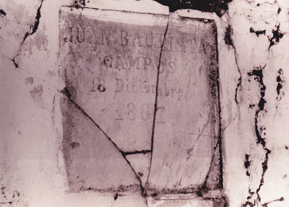 Aquí yacían los restos de quien fuera el primer boticario de la población, el portugués Juan Bautista Campos.