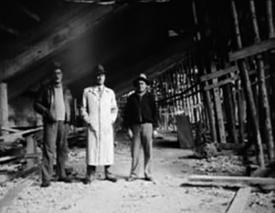 El Arq. J. Scasso y colaboradores bajo las tribunas que comenzaban a elevarse formando el círculo del Estadio.