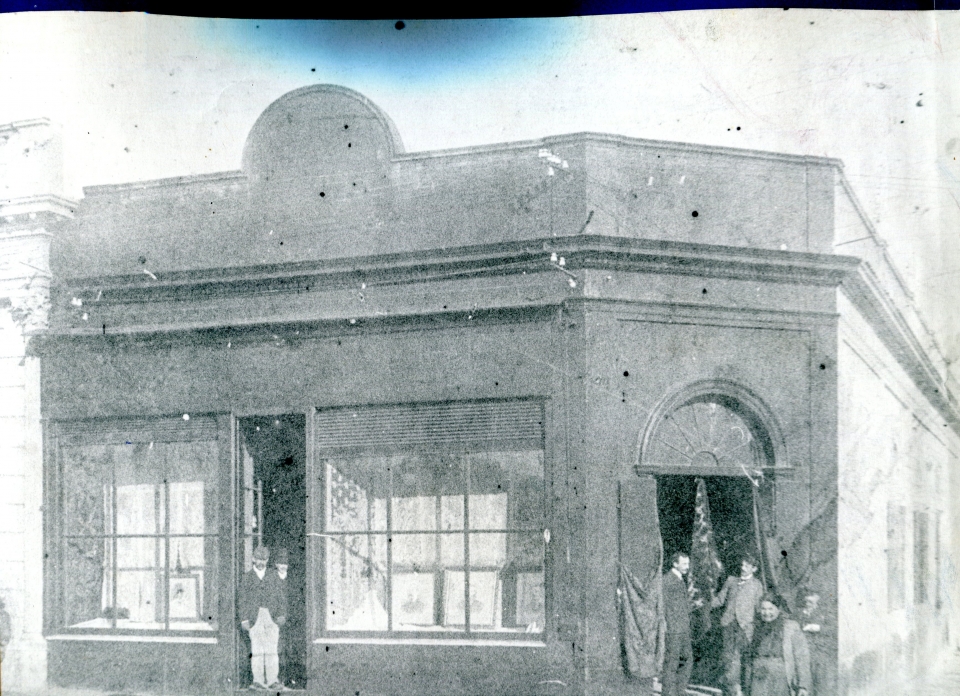 El frente del negocio lucía así, con dos vidrieras pequeñas al frente, muy oscuras tanto en el exterior como adentro, luciendo muy poco su mercadería; denominado como “La Platense” y en la que vendía zapatos, fonógrafos, coronas mortuorias, alambre, zinc y otros muy diversos artículos.