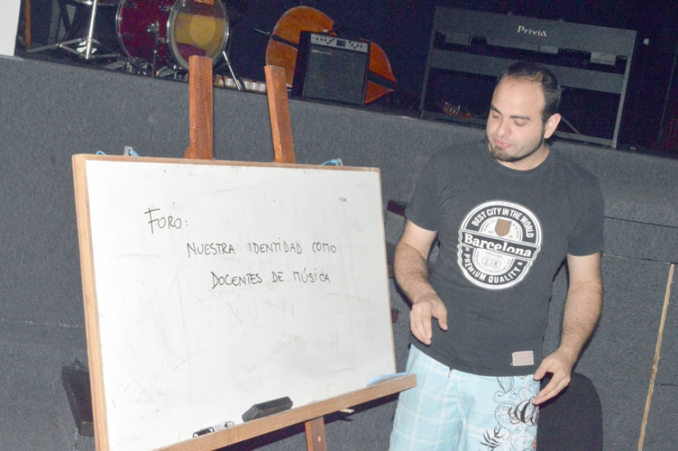 En horas de la mañana (foto derecha arriba) se llevó a cabo un Foro sobre “Nuestra identidad como docentes de música", siendo el referente de la ocasión Felipe Badaro.