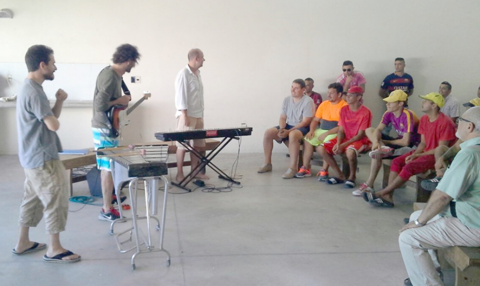 Como en otros años, desde el Movimiento Jazz a la Calle hubo disposición para acercar la música hacia el centro de reclusión ubicado en Pense. El Director de la Unidad, Teniente Luis E. Rosas coordinó con Horacio Acosta la presencia de los músicos Alvaro Genta en guitarra, Maximiliano Nathan vibráfono y Alfredo Monetti en teclado, quienes ofrecieron su música a los internos como forma de integrar a todos al movimiento y darles la posibilidad a estas personas de que ellos también puedan disfrutar de la propuesta que tiene la ciudad. Cuando le cárcel se situaba en el centro de la ciudad, la música de jazz también estuvo presente, siendo las primeras en sumarse a la propuestas las integrantes del grupo argentino “Bálale pa que te siga”. |
