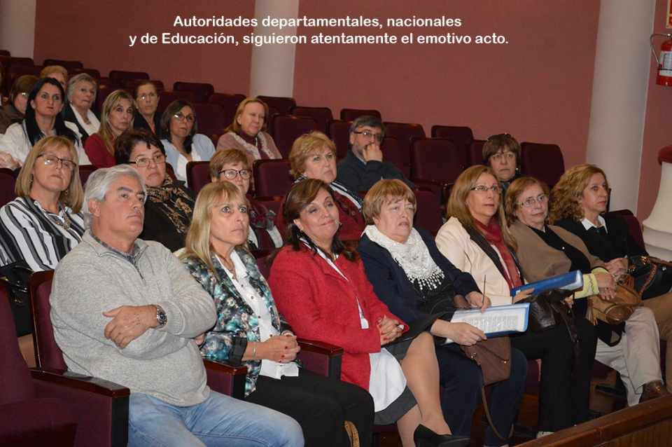 Indicó que este es un año de agradecimientos y recuerdos, teniendo palabras especiales para la escuela a la que concurrió junto a sus seis hermanos. Con mucha emoción recordó sus años en la escuela Nº 1 y agradeció a sus padres, especialmente a su madre presente en la sala, por todo lo que le brindaron permitiéndole llegar hoy a ser la Directora de ese centro educativo.