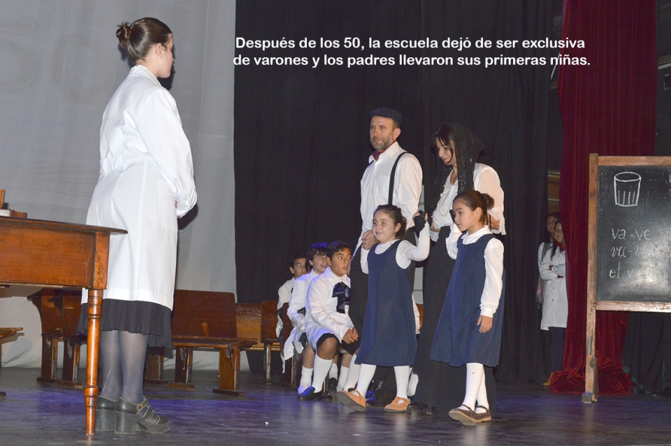 El acto contó además con diferentes cuadros plásticos en el que intervinieron alumnos, ex alumnos y padres, que fueron contando poco a poco la historia de la escuela en sus principales momentos.