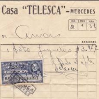 Finalmente mostramos una nota de la reconocida Casa “Telesca”, la que tuvo diversas ubicaciones aunque casi todas en el cruce de las calles Colón y Roosevelt (antes San José) de la época.