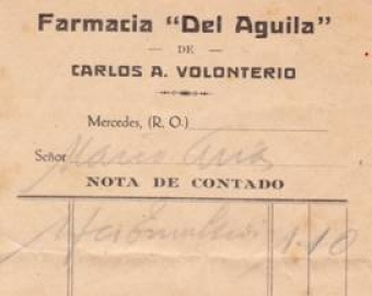 Y trasladándonos hacia el norte cambiamos y tomamos la calle Colón encontrando en aquella época a la conocida Farmacia “Del Aguila” de Carlos A. Volonterio, que sobre su puerta de entrada lucía la figura en material de dicha ave rapaz.