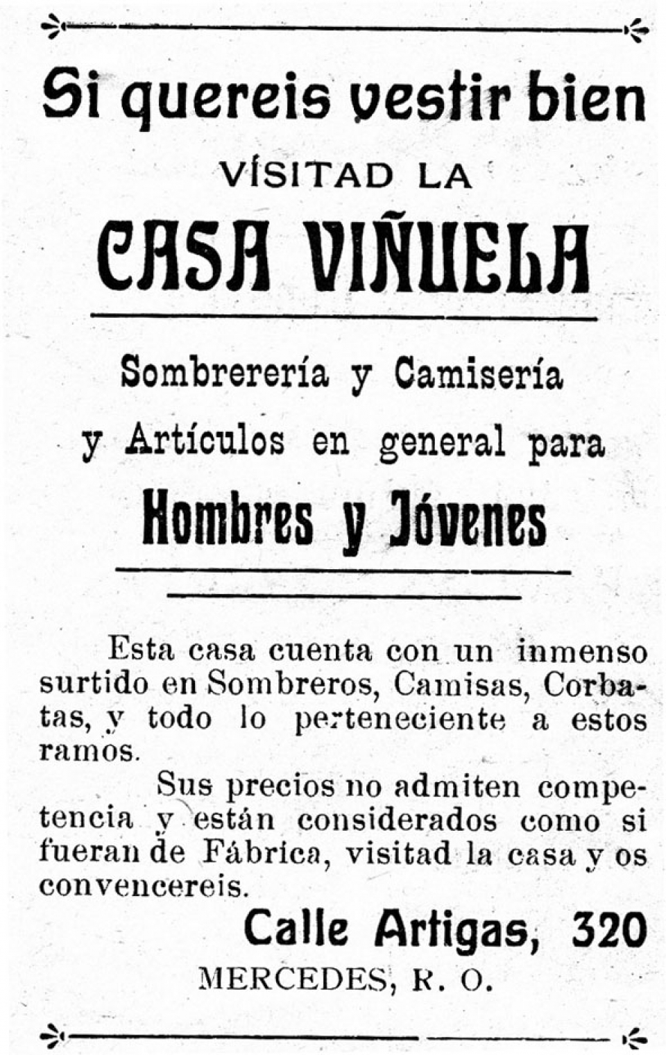 Entre las noticias referidas a diferentes comercios que presentaban sus avisos en la prensa del medio rescatamos: la “Casa Viñuela” ofreciendo su surtido de gorras y sombreros en su local de calle Artigas entre San José y Minas (hoy F. Aldunate y J.E.Rodó); “La Blanca”, gran casa de modas cuya propietaria era Blanca R. de Fresco; el “Almacén de Aquiles F. Martínez” en calles Salto esquina Buenos Aires (hoy S. Rivas y Dr. Braceras).