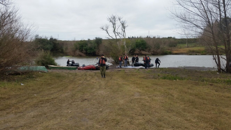 Autoridades de Prefectura y Judiciales están haciéndose presente en una zona cercana a la desembocadura del arroyo Yaguarete donde fue encontrado sin vida el joven León Martínez de 17 años quien era el último ocupando de la embarcación que no había sido hallado tras el accidente ocurrido el sábado último en la tarde en el río Uruguay en cercanías de la planta de UPM |