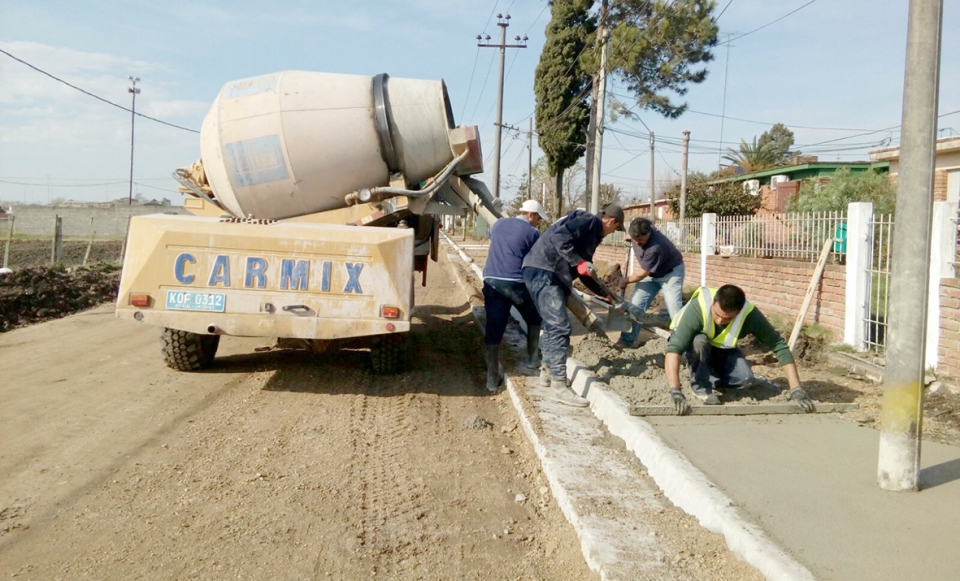 En esa zona sobresale la intervención en calle continuación Elías Regules, donde se culmina la construcción de cordones y platinas, bocas de tormentas, desagües y entradas para vehículos hacia predios de vecinos. Paralelamente se comenzaron a conformar las veredas, para lo cual se dispone de una hormigonera autopropulsada y un equipo de obreros que realizan la tarea de esparcir el material, su nivelación en toda la superficie y la demarcación de las juntas de dilatación correspondientes. Asimismo se sigue trabajando en los drenajes para aguas pluviales, en la base para cordón-platina y en la conformación de la base granular de la calle. |