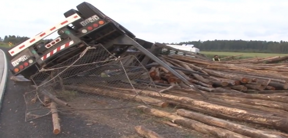 En ruta 3 a la altura del kilómetro 286.600 se registró el vuelco del camión marca Volkswagen con zorra que iba cargado con 15 toneladas de rolos de madera. El hecho se registró cerca de las 6 de la mañana en momentos en que el conductor, un hombre de 61 años que circulaba de norte a sur, intentó estacionar sobre la banquina para acomodar la carga y el terreno estaba en malas condiciones. |