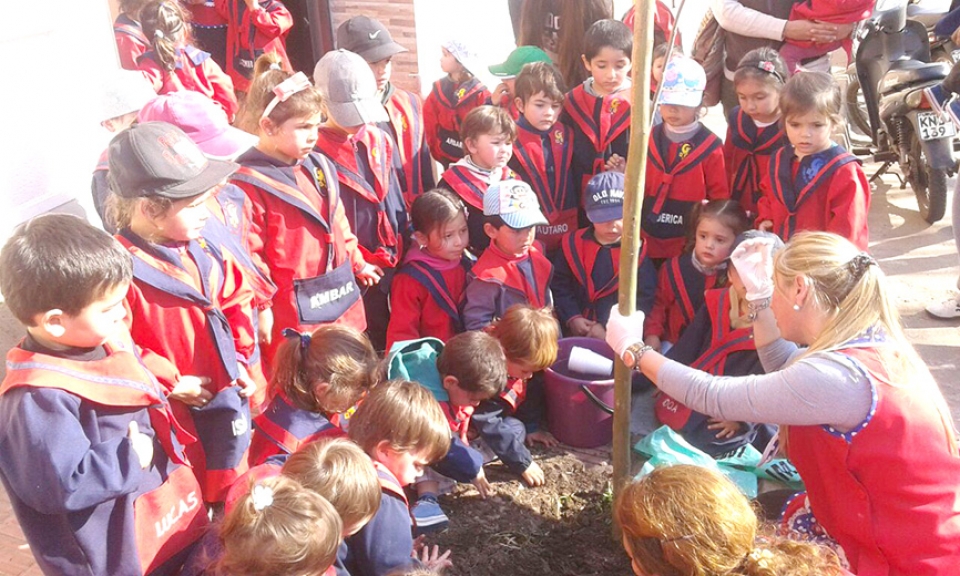 Asimismo, con los pequeños alumnos del jardín de infantes "Mi dulce Infancia" se procedió a plantar fresnos, en las veredas del barrio donde está ubicado.
