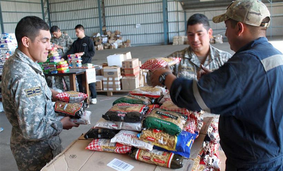 Los efectivos del ejército son los encargados de cocinar todos los días y funcionarios del municipio se encargan de hacer llegar los platos a los hogares.