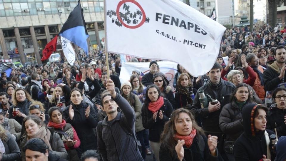 La Federación Nacional de Profesores de Enseñanza Secundaria (Fenapes) resolvió esta tarde en asamblea la realización de otro paro nacional de 24 horas en una fecha a determinar con la Coordinadora de Sindicatos de la Enseñanza (CSEU) y el PIT-CNT. La medida se adoptó “en defensa de la educación pública: contra los recortes presupuestales en la ANEP y los procesos de mercantilización y privatización de y en la enseñanza pública”, según el comunicado de los docentes. Fenapes recuerda que se cumple un año del decreto de esencialidad en la educación, y reivindica “el pleno respeto” de sus derechos y de la libertad sindical. |