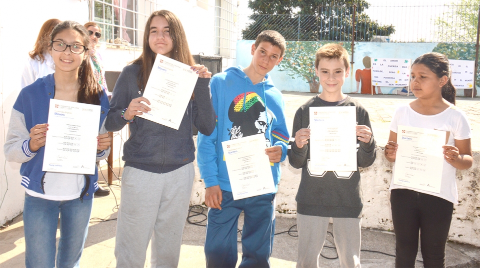 Estos alumnos concurrieron durante varios meses a las clases dictadas a través de video conferencia en el marco del programa Ceibal Inglés y el pasado año realizaron su examen internacional, cuyos resultados aprobatorios llegaron en la presente semana, disponiéndose que en el marco del acto patrio cumplido en la escuela también se entregaran los diplomas correspondientes.