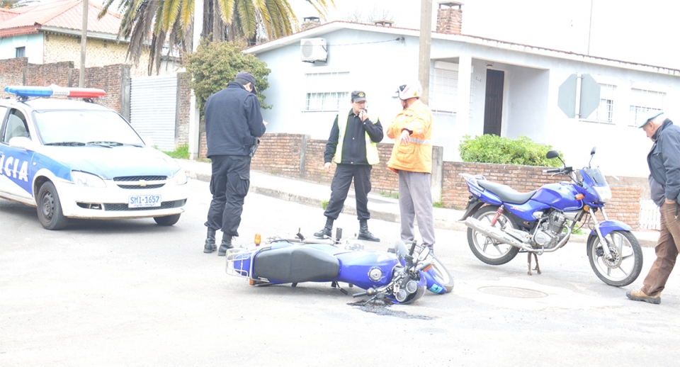 Dos lesionados leves dejó como saldo un accidente ocurrido en Pozzolo y Rodó, donde existe un cartel de pare, advirtiendo la peligrosidad en el cruce de dicha arteria. Por Rodó al este circulaba la moto de la división Tránsito, matrícula KOF 011 conducida por una funcionaria, mientras que por Pozzolo al norte lo hacía la moto Yumbo Max 110, matrícula KNF 069 conducida por Leonardo Javier Chopitea. La conductora del vehículo oficial debió ser trasladada a un centro asistencial para su asistencia. |