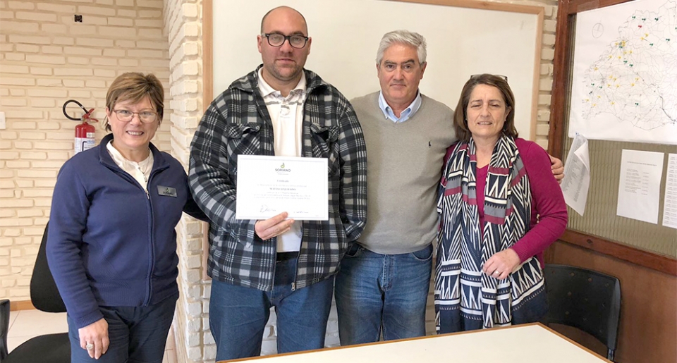 El Intendente de Soriano, Agustín Bascou, encabezó este lunes la entrega de los certificados a los cuatro participantes del programa “Pasantías Inclusivas” que lleva adelante el Dpto. de Acción Social y Familia de la comuna.