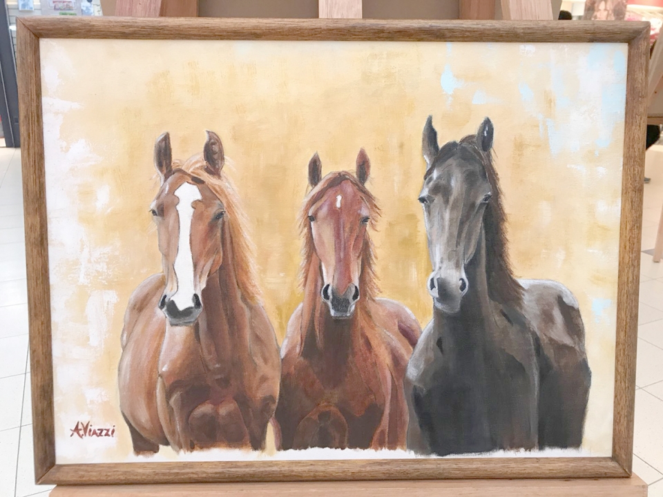 Son cuadros con distintas imágenes de caballos, utilizando como técnica óleo sobre tela. Viazzi quien residió junto a su familia en el campo, comenzó a dibujar desde pequeña, siendo el caballo la imagen que despierta en ella la mayor atención. En chile realiza cursos de pintura con la artista plástica Trixy Crauss von Harpe, realizando numerosas muestras colectivas en Frutillar y Puerto Varas. A su retorno, en Uruguay continúa trabajando con la artista plástica Moira Meyer. En Mercedes participo de talleres con Julio Fajardo, estuvo presente en muestras colectivas en el Castillo Mauá y en marzo participo del ciclo “Mujeres Creadoras” y luego de la exposición “Pintoras de Soriano “junto a otras 40 artistas del departamento. Desde el año pasado forma parte del “Taller al sur” del profesor Ariel Galain. La muestra en Terminal podrá apreciarse durante el presente mes. |