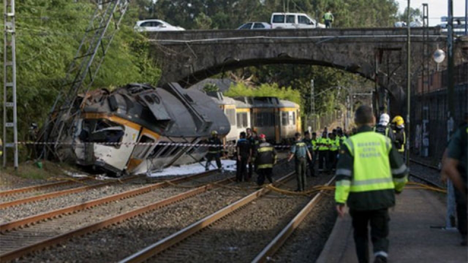 Al menos cuatro personas murieron hoy y otras 47 resultaron heridas entre ellos dos uruguayos, en el noroeste de España al descarrilar un tren de pasajeros que unía Vigo con Oporto, en Portugal, informaron las autoridades de la región de Galicia.