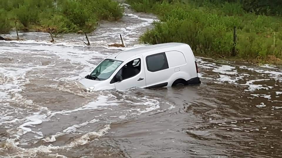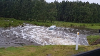 Sobre las 7 de la mañana de hoy, una camioneta que circulaba desde Mercedes hacia Montevideo fue arrastrada por las aguas que pasaban sobre la ruta. El hecho se produjo en ruta Nº 2, kilómetro 262/500 lugar donde se forman grandes lagos de agua cuando la lluvia es intensa. El vehículo fue arrastrado por la corriente y sus ocupantes no resultaron lesionados..