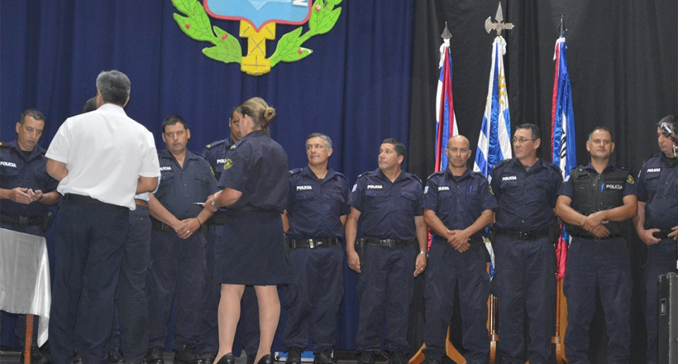 En el salón de actos de Casa de la Cultura se realizó el acto mediante el cual se recordó un nuevo aniversario de la creación de la Policía Nacional. En la oportunidad hubo reconocimientos por años de servicio y por acciones. El premio “Jefe de Policía” fue para la Dirección de Investigaciones. El Inspector Mayor González señaló que el viernes culminará su preparación profesional una nueva tanda de nuevos funcionarios policiales. También manifestó que el hurto y la rapiña son los delitos que más de denuncian. |