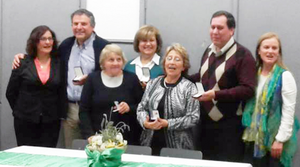 En el día del alumno y funcionario de UTU, el viernes pasado en la Escuela Técnica Dolores, se realizó la entrega de medallas a docentes de ese centro de estudios. Por los 30 años de actuación recibieron la distinción: María Teresa Mastandrea y Alfredo Cornú, por 25 años de trabajo recibieron medallas: Laura Armand Pilón, Edi Alvarez, y Jorge Laporte. En la foto junto a los homenajeados, la Directora de UTU Dolores Dra. María Inés Pérez y la Sub directora María Dolores González. |