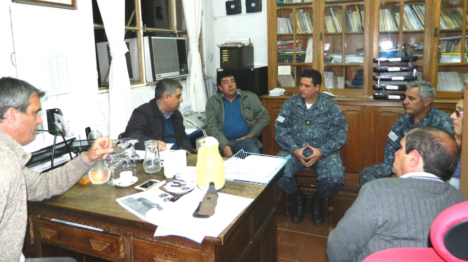 El tema primordial es el del delito de abigeato que tiene en jaque a los productores de la zona que han sufrido importantes pérdidas económicas. Cerrando la ronda de entrevistas la comisión asesora recibió este lunes al titular de la Prefectura de Mercedes, Capitán de Fragata Rodrigo Barcelona, quien concurrió acompañado del Alférez de Fragata Hugo Posadas. Los ediles se interiorizaron sobre las actividades específicas, que desarrolla esta Unidad en su área de jurisdicción y de esta manera cerraron la ronda de consultas en el tratamiento del expediente del edil Leonel Silva, sobre el tema abigeato, el que fue informado posteriormente y elevado al plenario. En esta ocasión estuvieron presentes los ediles Gonzalo Barboza, Alba Aguilar, Oscar Fracuelli, Andrés Juri y Eduardo Perazza. |