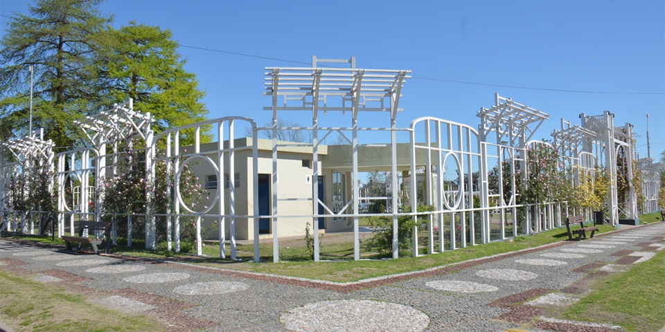 El tema principal de la fotografía es: “El Rosedal como espacio público”. La imagen puede estar compuesta por personas, reflejar una situación de uso y disfrute de esta plaza de Mercedes.