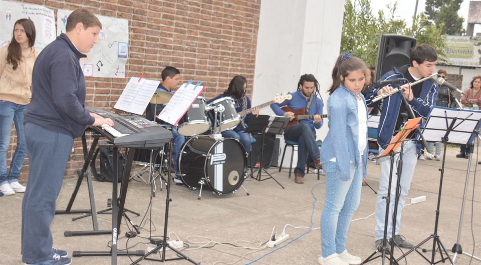 Como es tradicional en el Liceo Nº 3 de Mercedes se cumplió con una jornada de música y danza, en la celebración del Día Internacional de la Música, ofreciendo los alumnos coreografías, pero además generándose la participación de otros representantes de la comunidad que hicieron sus aportes, abriendo las puertas de la institución educativa hacia todos. Así lo remarcó la Directora del centro, Prof. Gloria García de Pujolar, quien además valoró la vinculación que se logra entre la música y la danza y las restantes asignaturas, indicando que "la música trasciende fronteras y con esa consigna es que se está preparando una intervención urbana que se realizará el 7 de noviembre en Plaza Artigas, donde los chicos llevarán música, danza y otras actividades, constituyéndose en una actividad integradora". Premios en Montevideo La Directora destacó que un grupo de estudiantes estuvo participando en actividades deportivas en Montevideo, ganando la Jabalina de Oro, como así también Plata en esa especialidad y en Disco y Bronce en 100 metros con valla. Participaron: Milagros García, Camila López, Santiago Vespa, Valentina Marozzi e Ingrid Moreira. El 26 un grupo de jóvenes competirán también en Montevideo por primera vez en Coreografías Artísticas, con la conducción de la Profesora María Machín. |