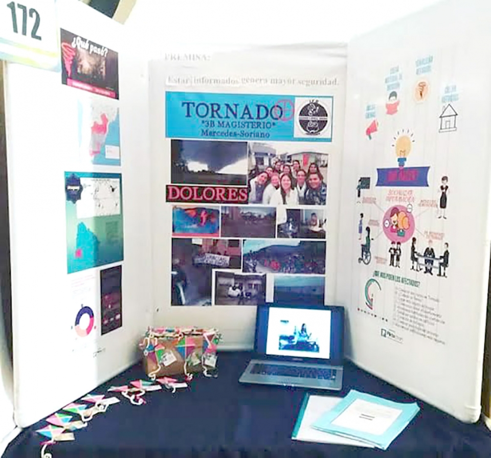 Categoría Ñandú, área Social, Tornado, “Hechos e influencias del tornado en Dolores” del Instituto de Formación Docente, orientadora Gina Baldi. Integrantes: María Belén Marabot, Melanie Riva y Jimena Campodónico.