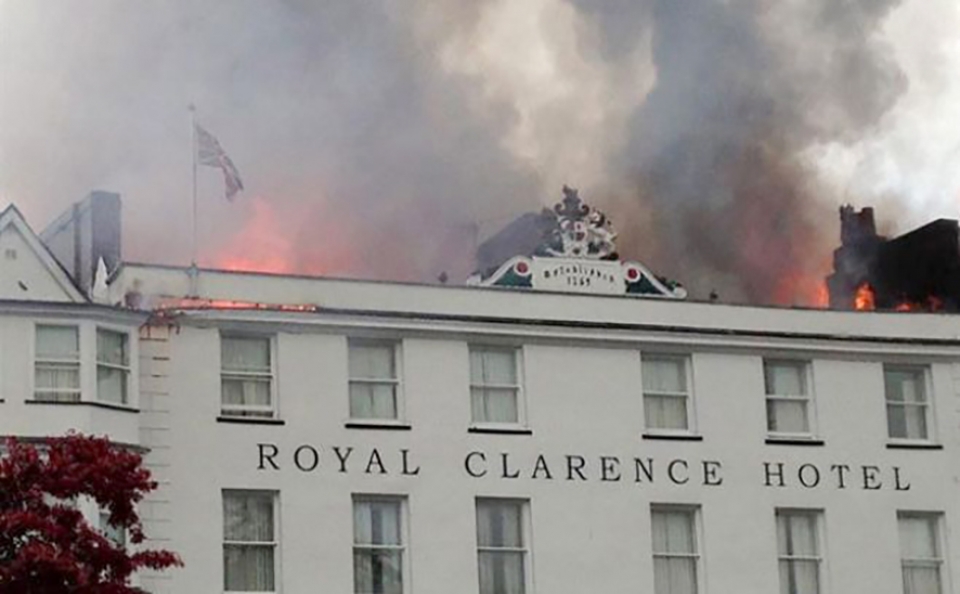 El Royal Clarence Hotel de la localidad de Exeter, considerado como el "más antiguo de Inglaterra", ha comenzado hoy a derrumbarse como consecuencia del incendio declarado en la zona desde el viernes, informó la cadena BBC. Las llamas se propagaron desde una galería de arte próxima a este hotel, que ha permanecido en pie desde hace casi 250 años, durante los que ha sobrevivido, por ejemplo, a los bombardeos alemanes en la Segunda Guerra Mundial. |