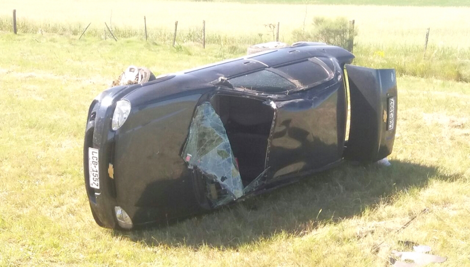 Un automóvil que se trasladaba desde Canelones a Fray Bentos volcó esta noche en las proximidades de Risso. El accidente ocurrió a la altura del kilómetro 218 cuando una familia oriunda de Fray Bentos viajaba hacia esa ciudad. Pablo Hernán Chans iba acompañado de su esposa y sus hijas guiando el Chevrolet Corsa LCB 1567. El vehículo quedó en la banquina. Chans Sánchez sufrió traumatismos leves y fue trasladado a Cams de Cardona, mientras que los restantes ocupantes resultaron con golpes leves. |
