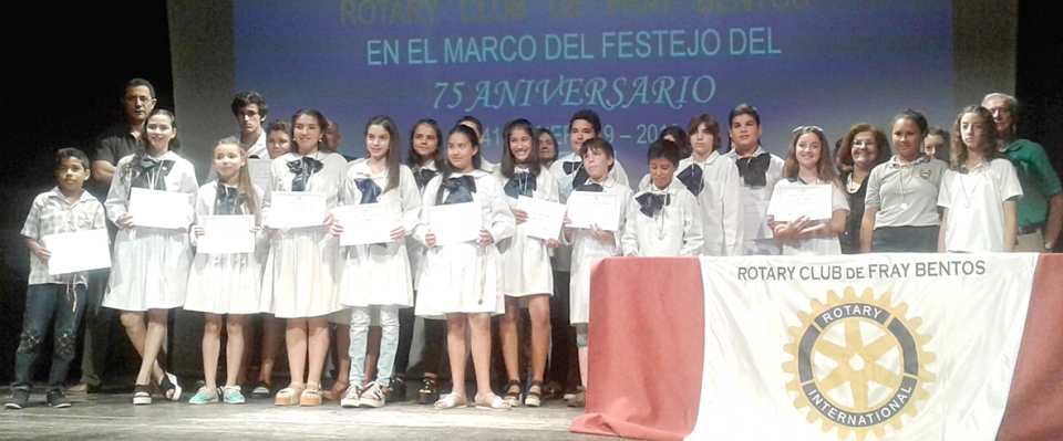 En la sede del Teatro Municipal Miguel Young con muy buen marco de público se llevó a cabo el acto por el cual se entregaron diploma y medalla al Mejor Compañero; y los Premios S.A.T.O. Servicio a Través de la Ocupación- por parte de Rotary Club Fray Bentos. Al ser entrevistado por Crónicas; su presidente Ing. Agr. Jorge Gallo Azeves nos dijo: “Esta ha sido una noche de muchas emociones. Esta es una actividad que ya tiene alrededor de cincuenta años eligiendo al mejor compañero de su clase. Siempre a esta altura del año Rotary Club Fray Bentos realiza la entrega del premio al Mejor Compañero elegido por ellos mismos donde se destaca el compartir, el ser solidario, el ser tolerante. También en este acto hemos entregado los Premios al Servicio a Través de la Ocupación reconociendo al Club Tulipán por sus 50 años de vida, a los cien años de la fundación del Club Nacional de Fútbol; a los 25 años del Programa Deportivo La Deporteca que conduce Walter Gustavo Socías, a la Profesora Mirna Linale Premio a la Trayectoria; y al joven Joaquín Cortacans Premio a la Investigación Científica. En lo referente a las Escuelas hemos reconocido no solamente escolares de Fray Bentos sino también a la zona rural cercana a la capital rionegrense y los colegios de enseñanza privados”. Por último el presidente de la rueda rotaria fraybentiina nos comenta que lo que les resta de actividades por la agenda 2016 es la entrega a los Premios Juancho: “Nos está quedando entonces lo clásico del 29 de diciembre que es la entrega de los reconocimientos al deporte, a los deportistas con los Premios Juancho. Para ello viene trabajando un equipo organizador donde están los periodistas deportivos, en coordinación con la Dirección de Deportes y con la Intendencia junto a los rotarios”subrayó el presidente Gallo Azeves. |