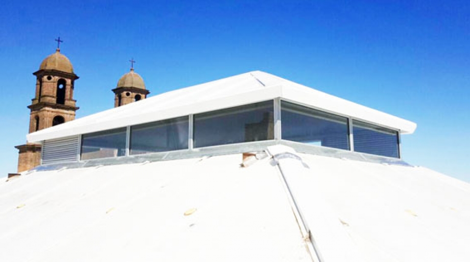 En el día de ayer se terminó de colocar el nuevo cerramiento en el techo de la sede del Municipio de Dolores sustituyendo la claraboya que fuera destruida por el evento climático de público conocimiento. En este caso el cerramiento está conformado con perfiles metálicos, vidrio, aluminio y cobertura superior en isopanel; además cuenta con celosías para facilitar la circulación de aire. |